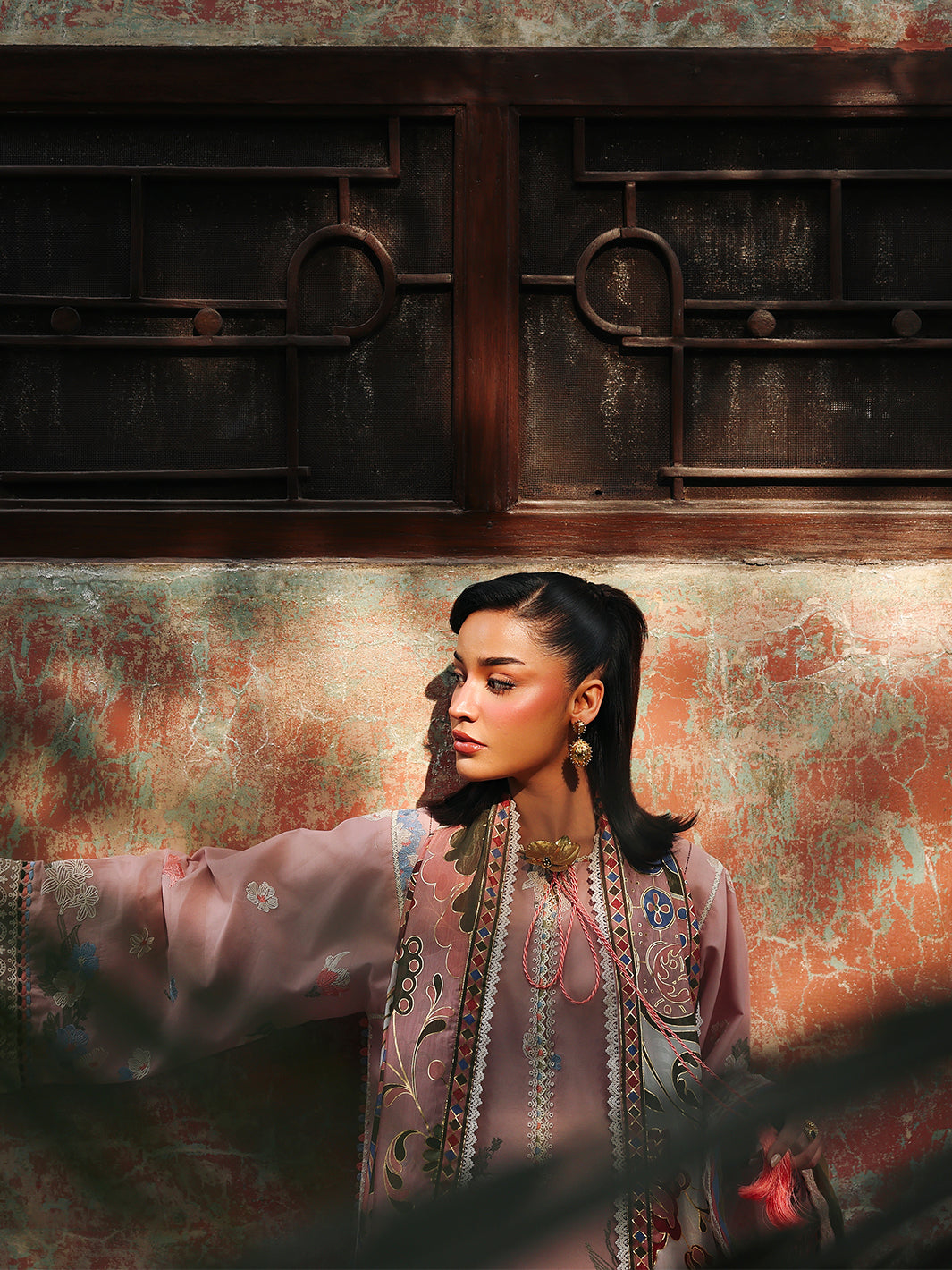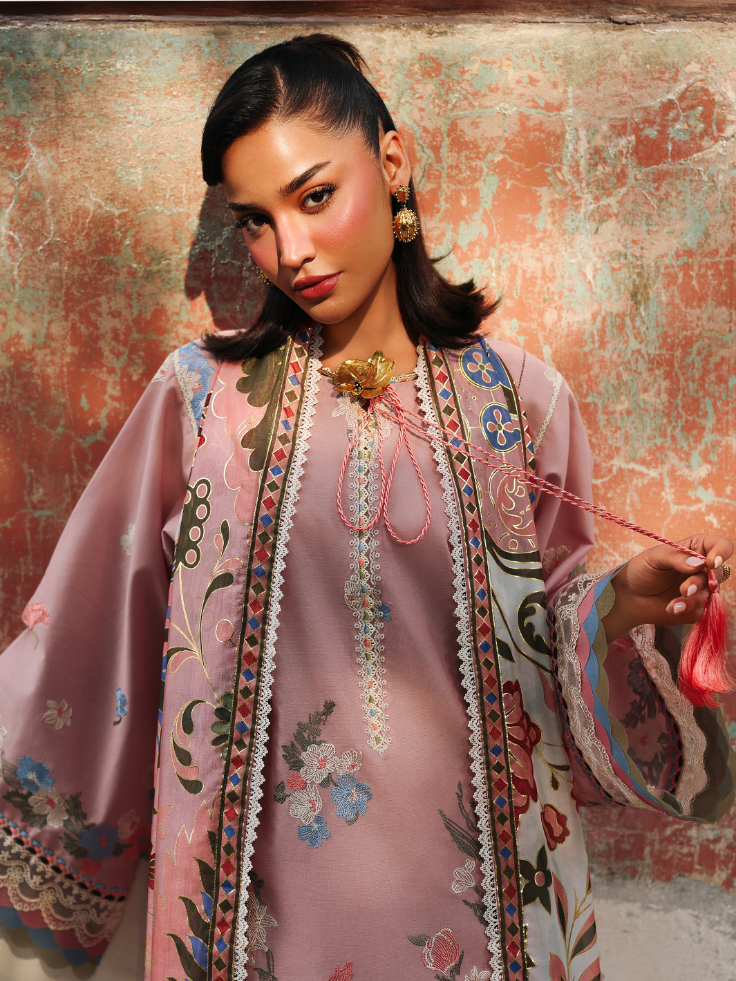 Embroidered Sleeves & Trouser Lace On Dyed Organza 2.50 Yard