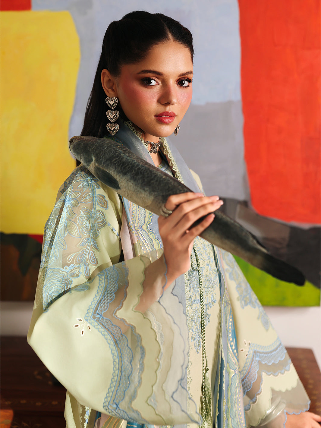 Dyed Lawn Borer Embroidered Front Left & Right 2 Pieces