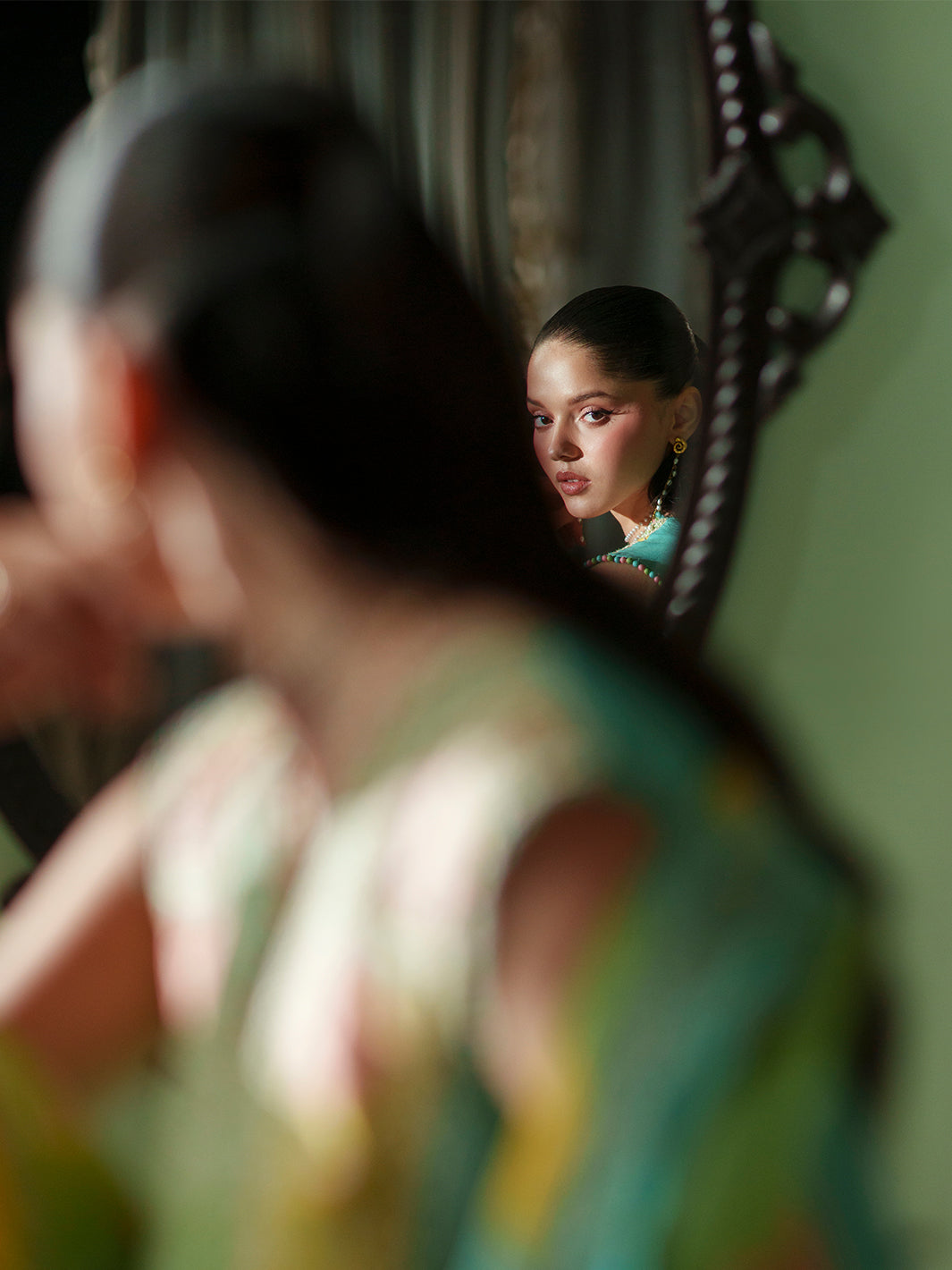 Embroidered Daman Motif On Dyed Organza 6 Pieces